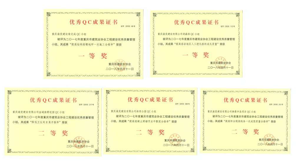 2018年4月12日,重庆市建筑业协会“2017年度建设优秀质量管理小组表彰暨成果发布会”隆重召开。重庆pg电子官方首页建设有限公司荣获“2017年度建设优秀质量管理小组”一等奖两名,二等奖三名。...
